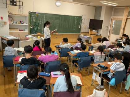 国語の時間です。「紙コップ花火の作り方」説明文の学習をしています。学習の発展として、各自が説明文を書いてみます。