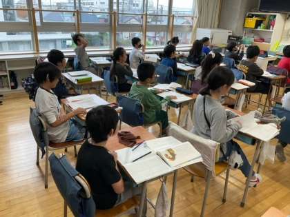 国語の時間です。名作「ごんぎつね」の学習をしています。作品をじっくり味わってください。