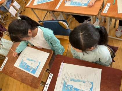 くじらぐもに乗った子どもたちは、どんなことを話しているのでしょうか? 想像して、ワークシートに書いてみましょう。
