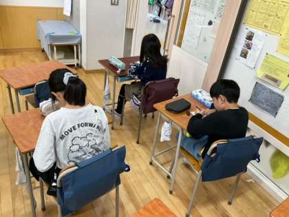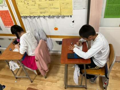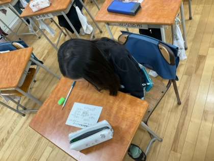 社会科の時間です。都道府県名テストに取り組んでいます。漢字で書けるようにしましょう。