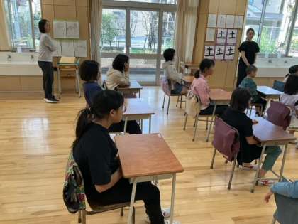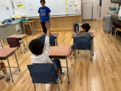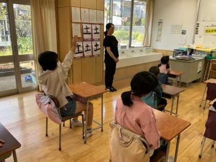 避難訓練の振り返りをしています。煙の中では、どのように行動することが大事ですか?