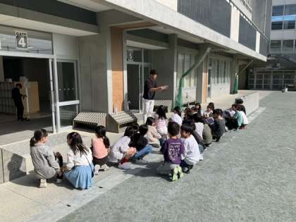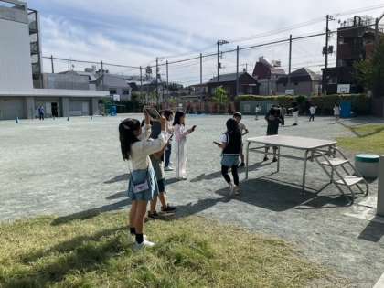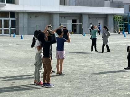 理科の時間です。遮光板を使って太陽を観察したり、iPadで影を撮影したりしています。遮光板で見ると、太陽は何色に見えるかな?