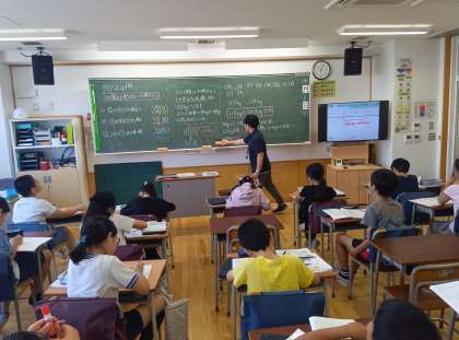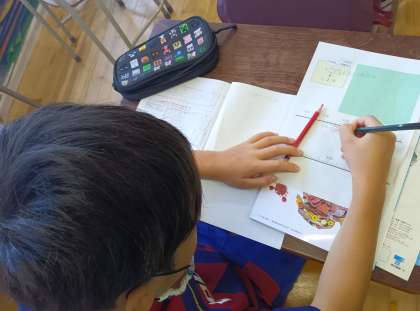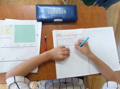 算数の時間です。四捨五入した数から、その範囲を出しました。数直線を使って、表現しました。
