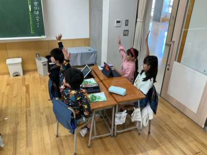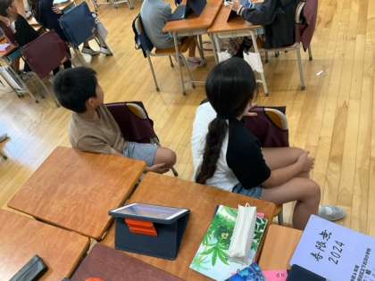国語の時間です。見てください、この意欲的な学習態度。立派です。