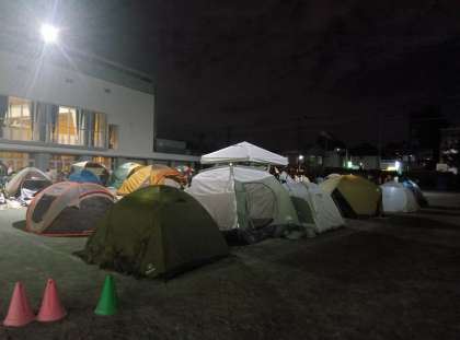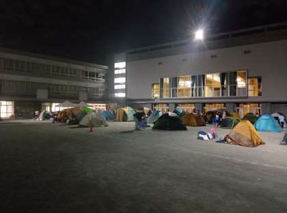 そろそろ就寝の時間です。外は涼しくて気持ちがよいです。明日の朝は、ラジオ体操があります。ぐっすり眠ってください。おやすみなさい。