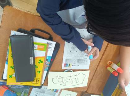 社会の時間です。どんな車が欲しいかお客様の希望を聞き、注文シートをもとに車を作ります。