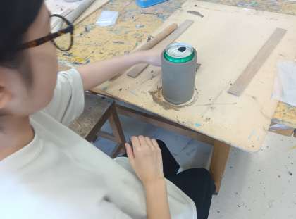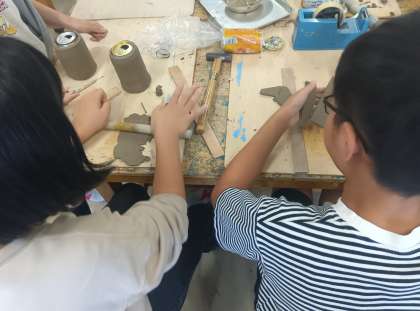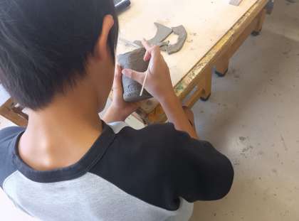 図工の時間です。作りたい形になるように粘土を丁寧に練りました。細部までこだわりが感じられます。
