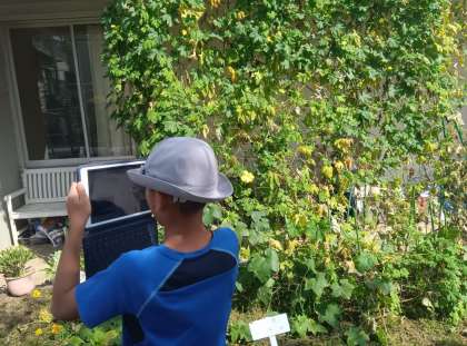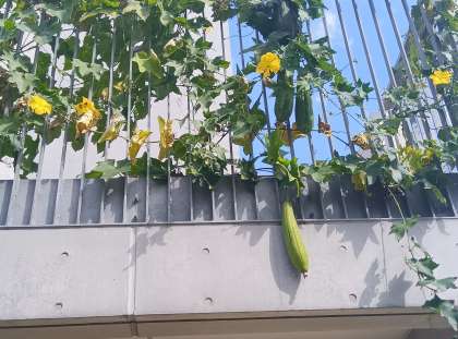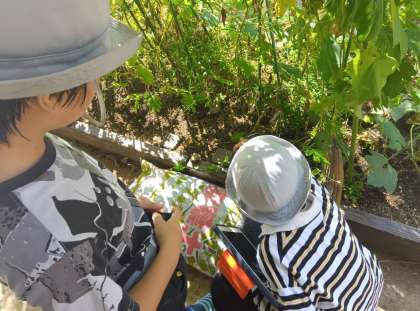 理科の時間です。ゴーヤとヘチマを観察しました。実が大きくなるだけでなく、葉っぱの大きさや色の違いもよく見ました。