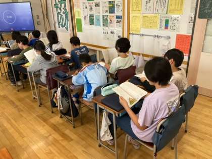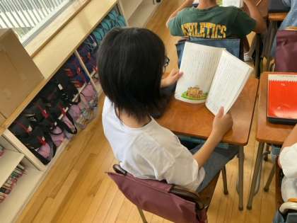 国語の時間です。「たずねびと」叙述をもとに、登場人物の心境の変化を読み取っています。
