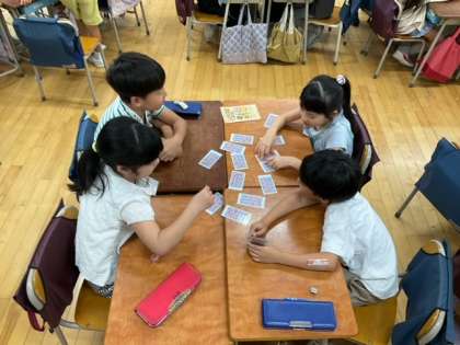 外国語活動の時間です。英語で神経衰弱にチャレンジしています。