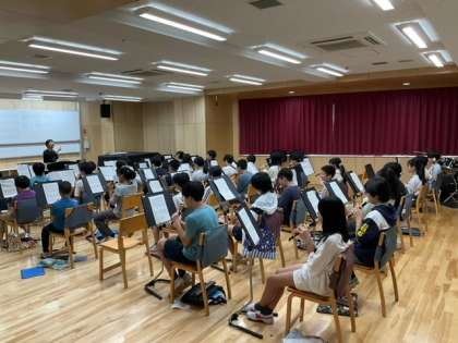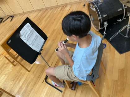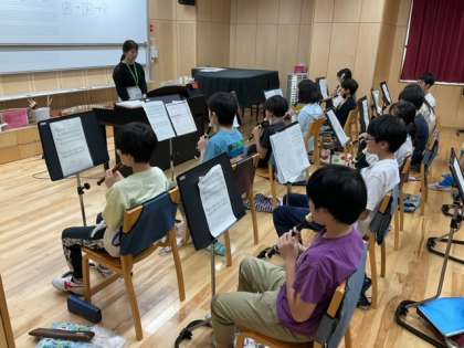 音楽の時間です。「カノン」に取り組んでいます。リコーダーの美しい音色が響いています。
