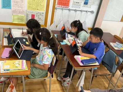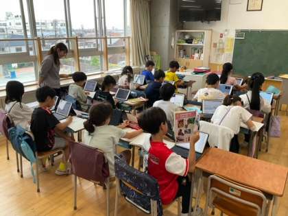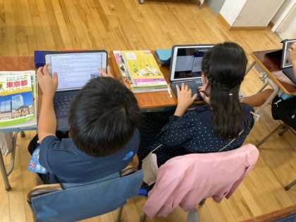 社会科の時間です。東京都の文化財に次いで調べています。新たな発見がありそうです。