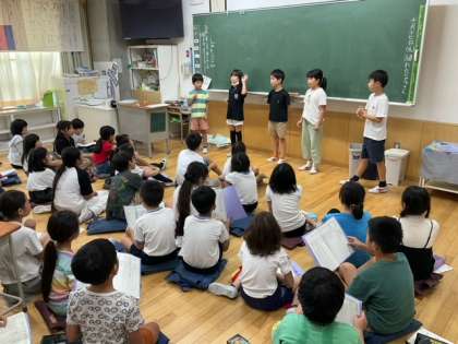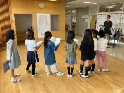 学年練習の時間です。パートに分かれて練習を進めています。役になりきって!