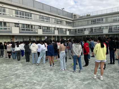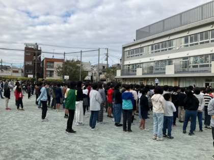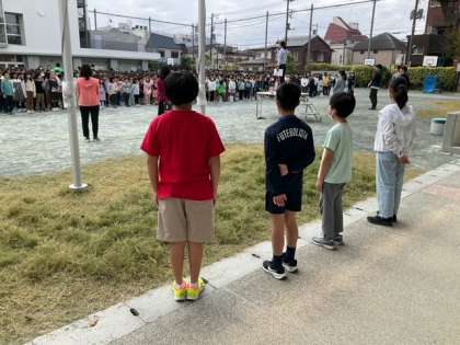 今朝は、涼しい中での全校朝会になりました。体調には十分気をつけましょう。