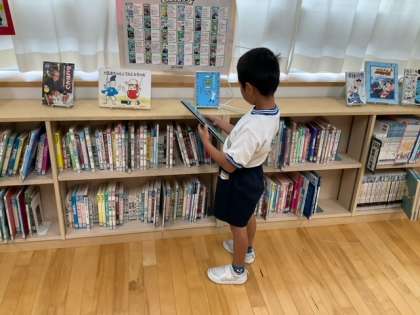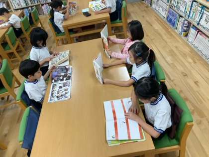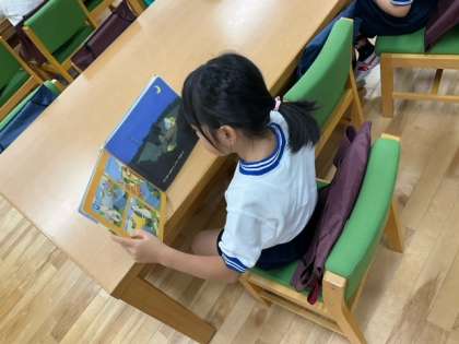 読書の時間です。1年生のみなさんは、本の世界が広がっていますね。