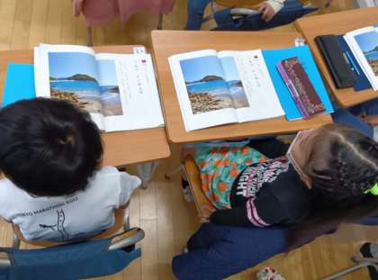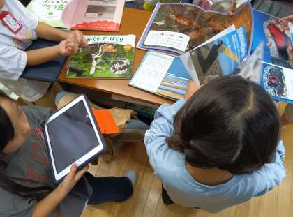 国語の時間です。本から調べたい生き物を選んで、隠れている生き物をワークシートにまとめました。
