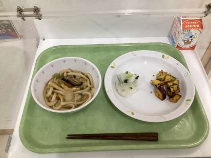 ちゃんこうどん かぶのゆず漬け 大学芋 牛乳