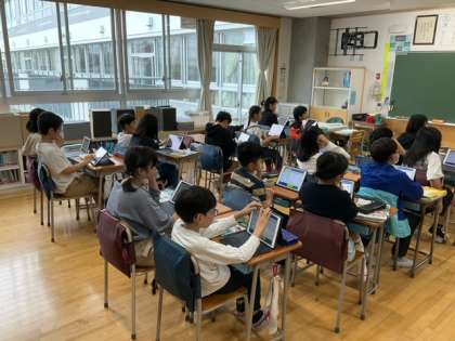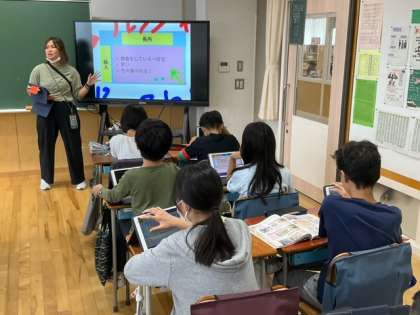 社会科の時間です。学習のポイントについて、具体例をもとに説明を受けています。