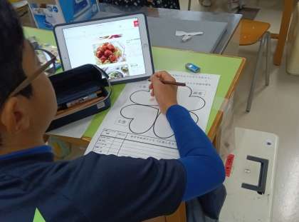 家庭科の時間です。栄養のバランスを考えて献立を立て、発表しました。