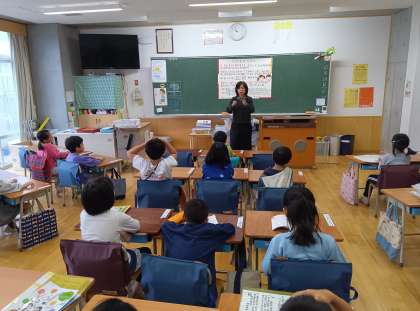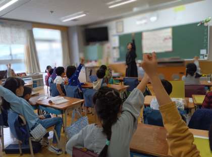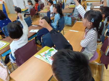 音楽の時間です。うたえバンバン♪を元気な声と手振りをつけて歌いました。