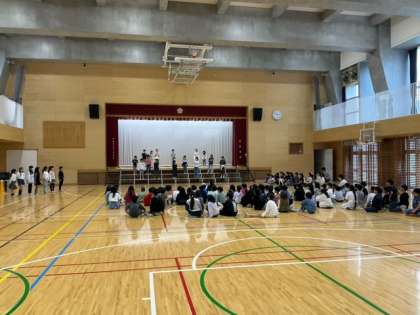 文化祭学年練習の時間です。お互いの演技を見合う姿勢が素晴らしいです。