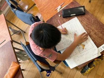 国語の時間です。「しらせたいな、見せたいな」話し言葉から、書き言葉へ。大事な学習です。