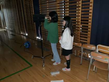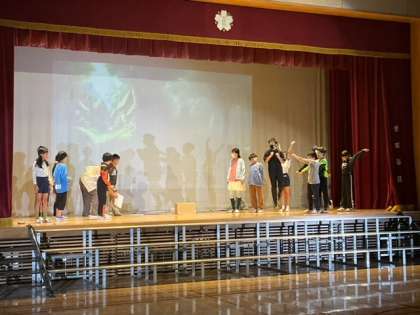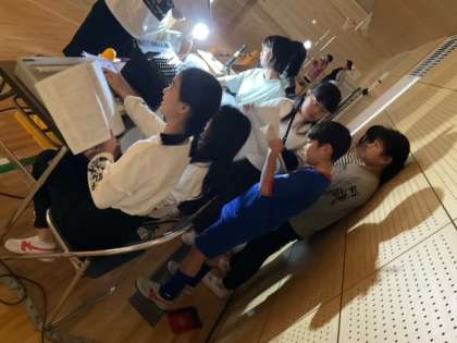 文化祭学年練習の時間です。照明、音響、背景なども、自分たちで取り組みます。