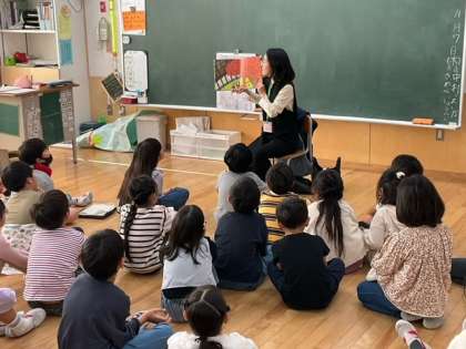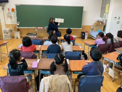 今朝は、1・2・3年生とくるみ学級の読み聞かせです。読み聞かせボランティアのみなさんが、すてきな本を選んでくださっています。