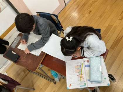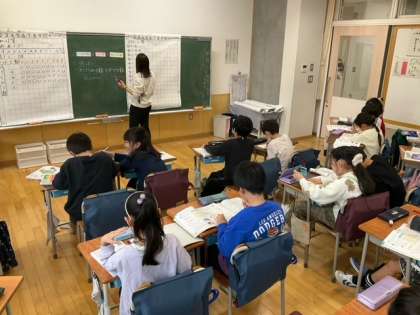 算数の時間です。九九の学習を進めています。四の段の九九を作っています。