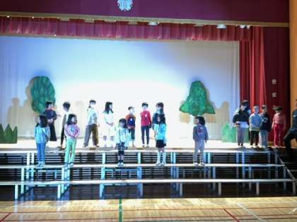 文化祭学年練習の時間です。場面の切り替えの確認をしています。日に日に上手になっています。