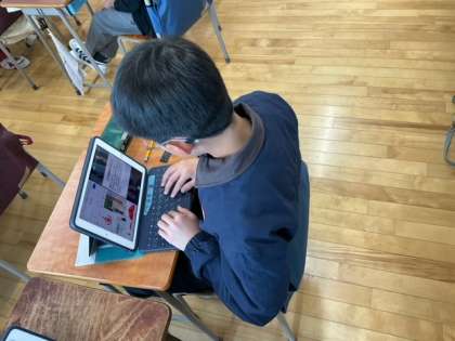 総合的な学習の時間です。みんなが住みやすい町について、調べたことをまとめています。