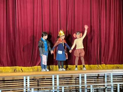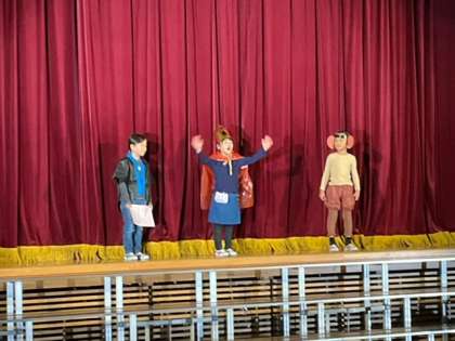 リハーサルが始まっています。オープニングは、1年生のはじめの言葉です。