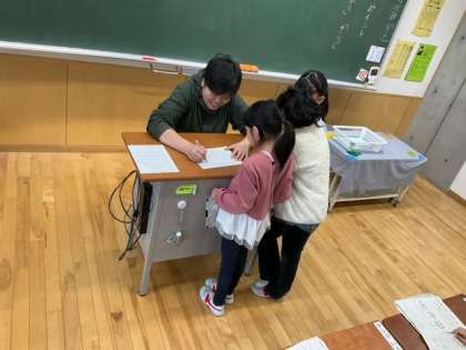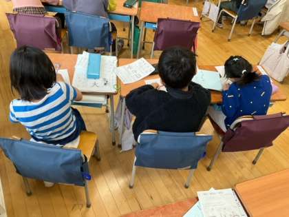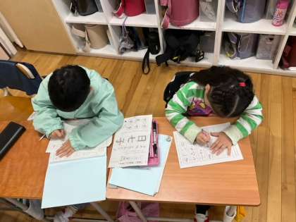 国語の時間です。おれ、まがり、そりに気をつけて、一文字一文字ていねいに練習しています。