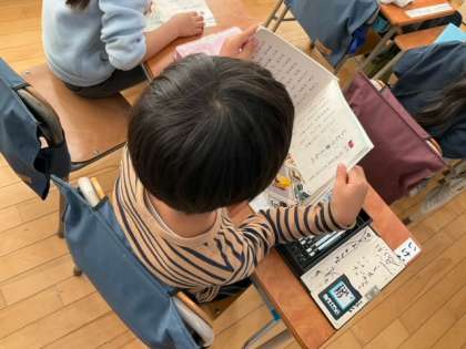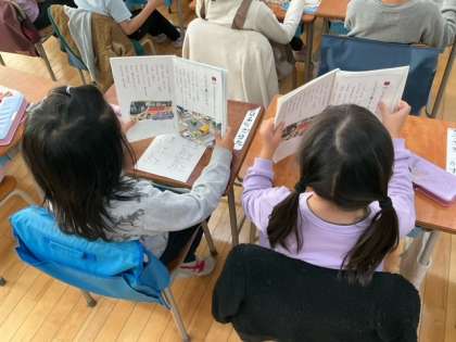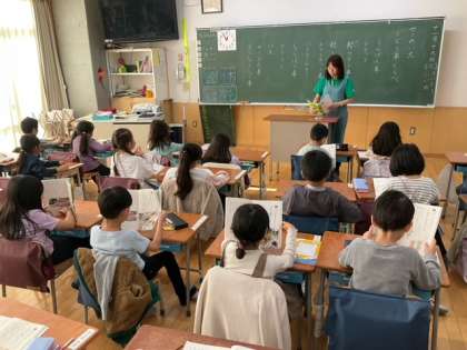 国語の時間です。「じどうしゃくらべ」自動車には、いろいろな種類があります。特徴を比べながら読みましょう。