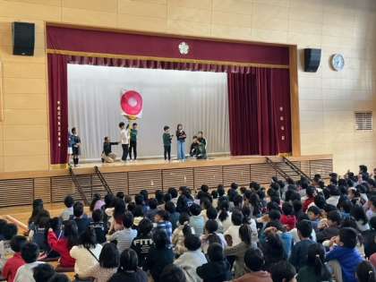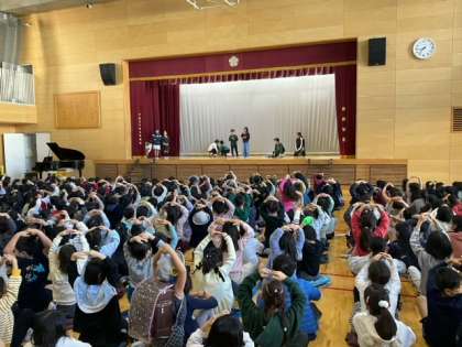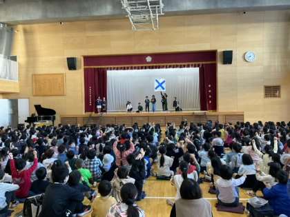 下北沢小学校が誕生して、9回目の記念日を迎えました。全校児童が集まりお祝いをしています。