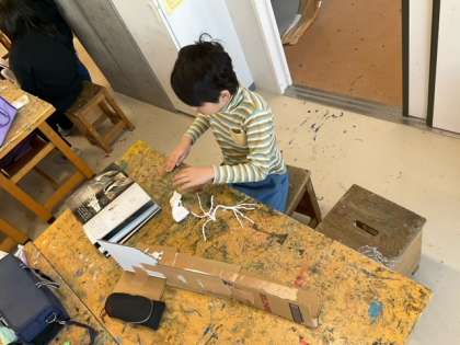 図工の時間です。「本から飛び出した物語」物語を立体作品であらわしています。