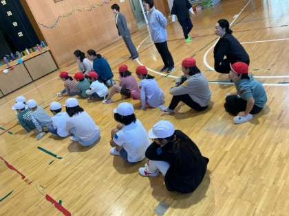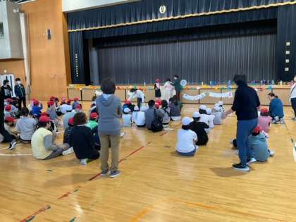 松沢小学校体育館で4校交流会が始まりました。友達をたくさん作りましょう!