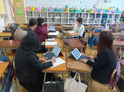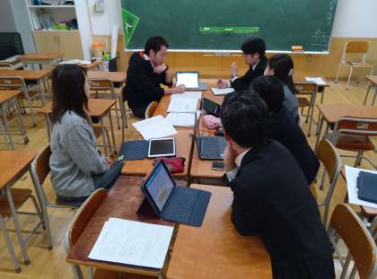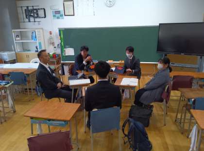 北沢中学校の先生方と授業の系統性や指導の工夫について、本校の授業を見た後に話し合いました。