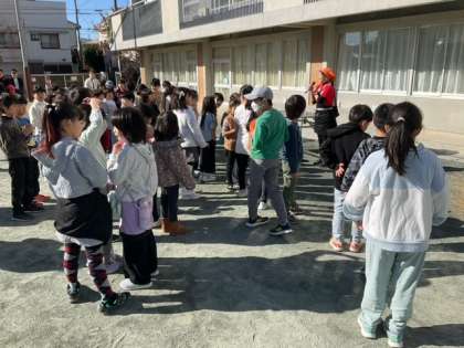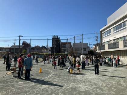 素晴らしい晴天の下、おもちつきイベントが始まりました。たくさん集まってきています。