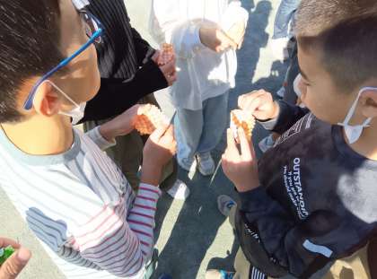 2、4、5年生の部が始まりました。もち米を少しずつ食べました。もち米が餅になることが分かりました。