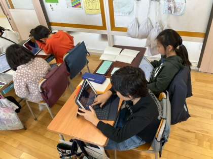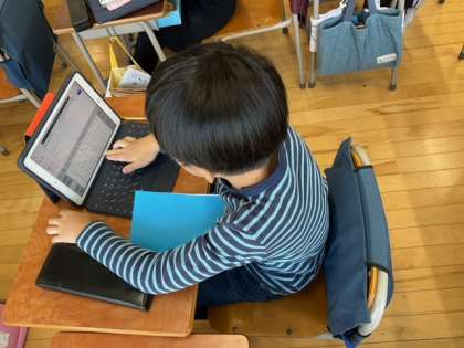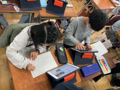 国語の時間です。学習を発展させて、工夫して説明文を書いています。