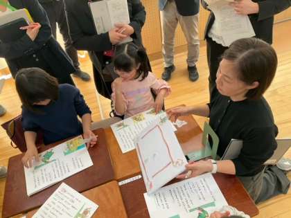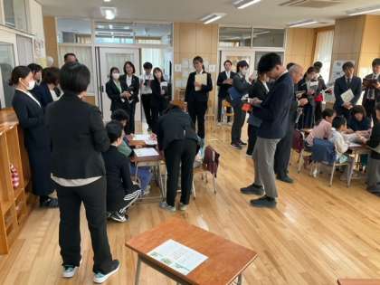 今日は、くるみ学級で研究授業を行っています。多くの先生たちが参観していて、子どもたちは緊張気味です。