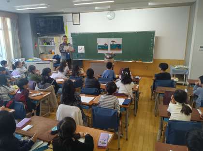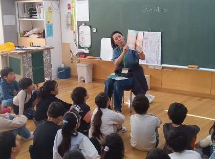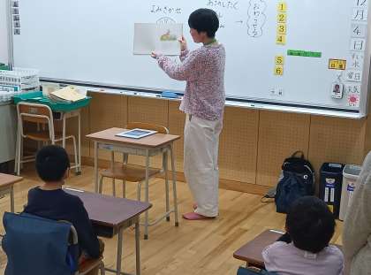 1年生、2年生、3年生、くるみ学級は読み聞かせの時間です。季節にあった話や人気のある話、早口言葉が入った話の読み聞かせを楽しんで聞いていました。
