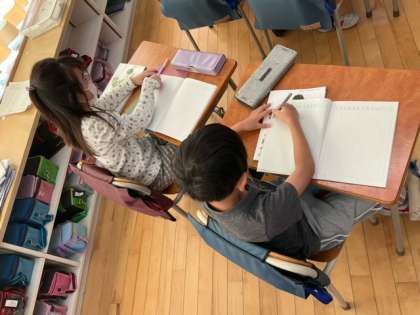 算数の時間です。今までの学習を生かして、発展学習に取り組んでいます。