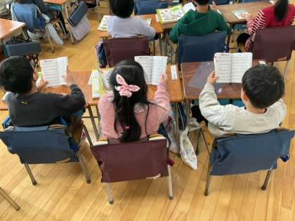音楽の時間です。「ジングルベル」子どもたちの元気な歌声が響きます。