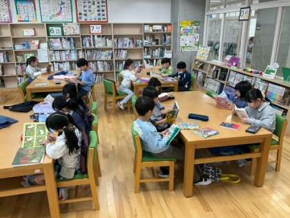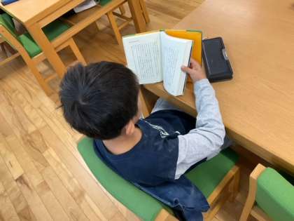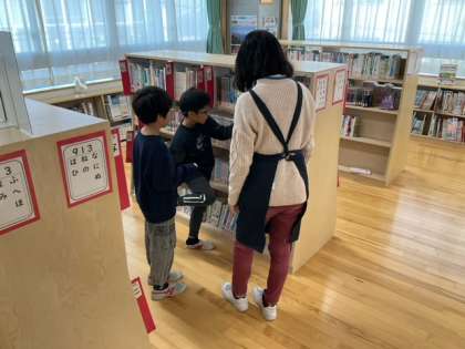 読書の時間です。司書の先生に聞くと、いろいろな本を紹介してくれますね。