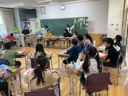 学級会の時間です。議題は、「2学期お楽しみパーティーをしよう」です。役割分担をして、主体的に進めています。