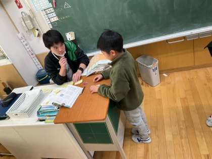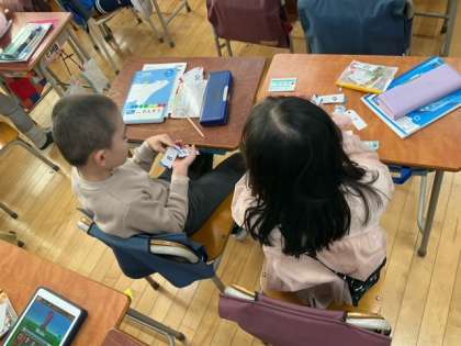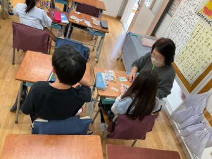 算数の時間です。九九をマスターしたら、先生に聞いてもらおう。