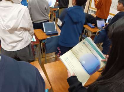 日本語の時間です。荒城の月の歌を聞いて、音読しました。難しい言葉もありましたが、想像しながら読むことができました。
