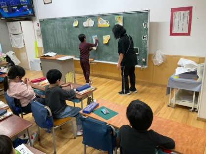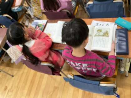 国語の時間です。「みきのたからもの」あらすじの確かめをしています。思い出したかな?